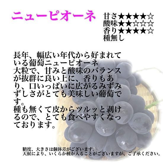 岡山特産ぶどうとも呼ばれており、 幅広い年齢層から親しまれています。 種無しで甘味と酸味のバランスが良く、 とても食べやすい品種です。